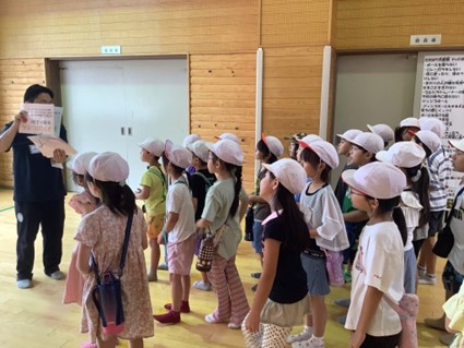 たてわり交流会(顔合わせ)が朝の時間に行われました。1年生~6年生で1つのグループを作り、6年生がリーダーとなって遊びを考えたり、何かイベントを企画したりします。他学年の児童とも交流ができ、良い活動となりました。