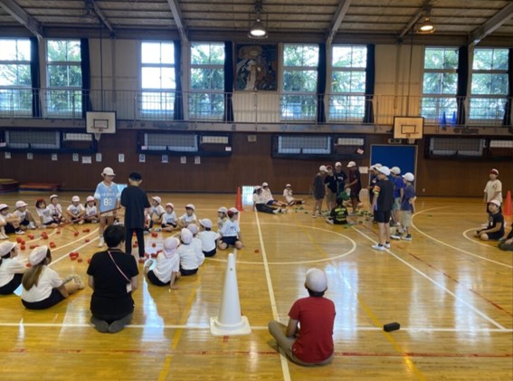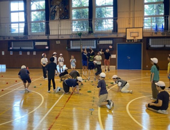 1年生から6年生までのたてわりグループで、遊びをしました。6年生が遊びの企画運営を行いました。どのグループも他学年の子たちと楽しく遊んでいました。