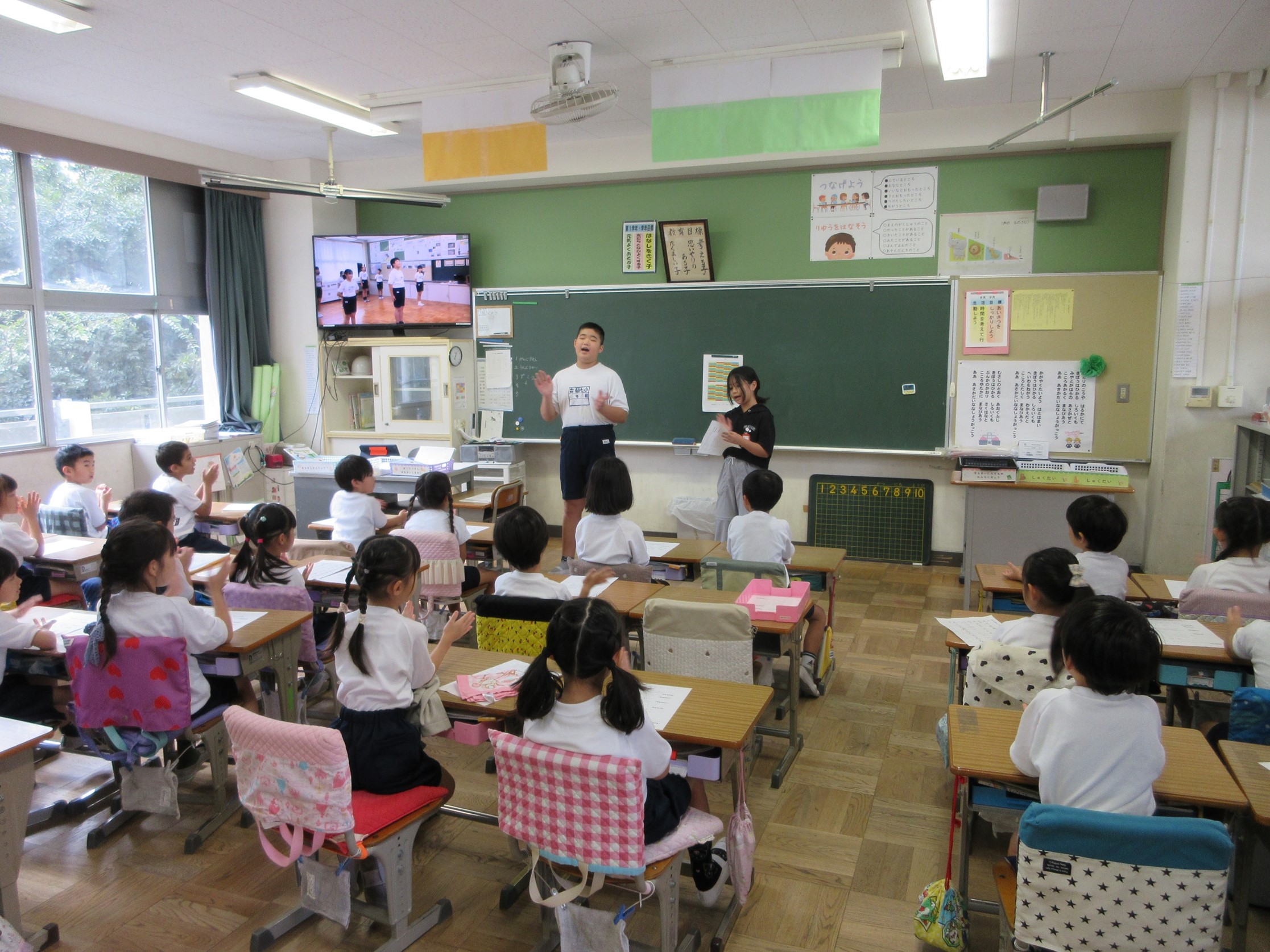 朝の時間に運動会の色別応援練習がありました。各教室に応援団が出向き、各色オリジナルの応援の仕方を教えていました。1年生の教室では、最初は初めての応援で緊張している様子でしたが、すぐ慣れて大きな声がでていました。