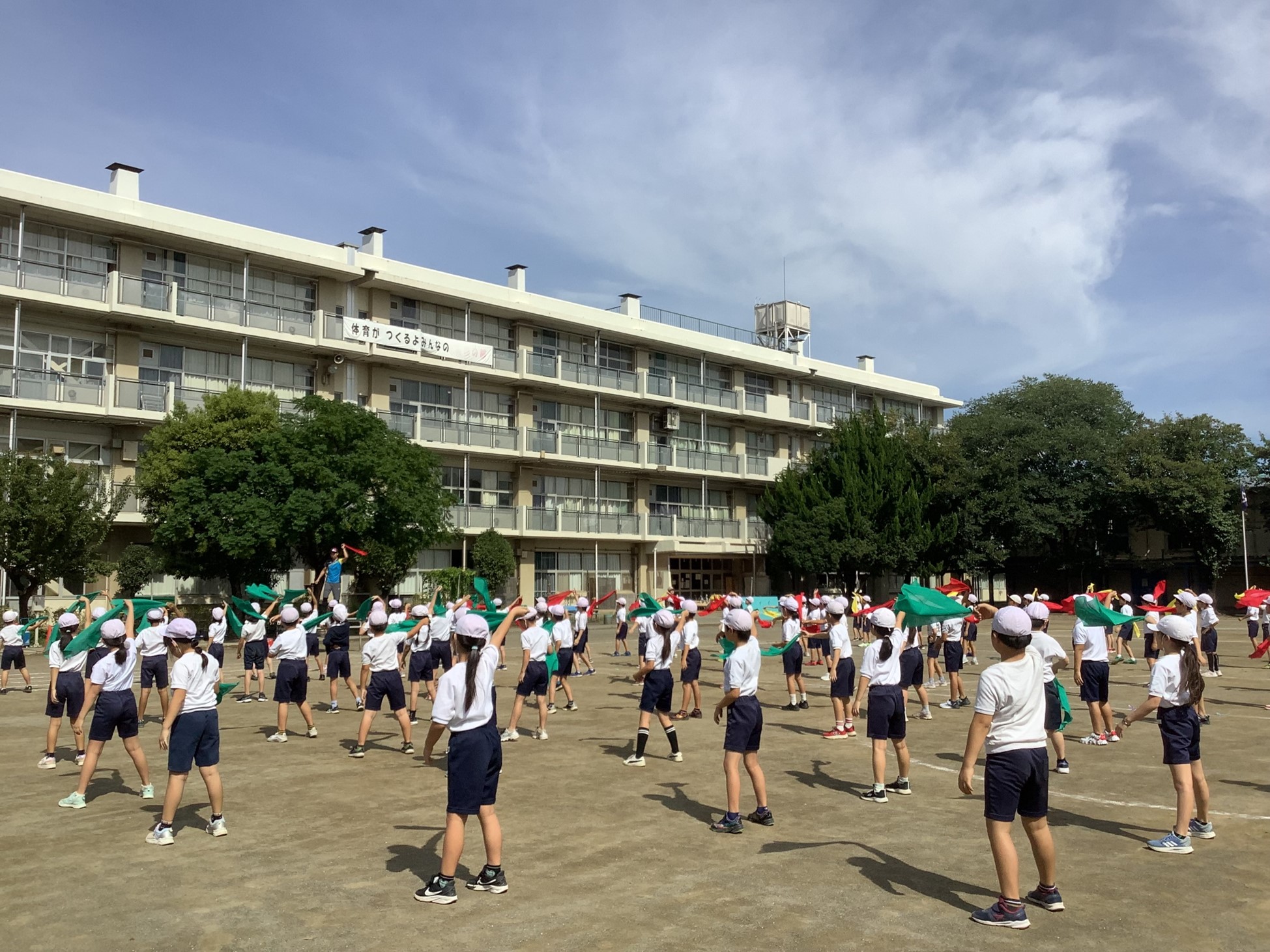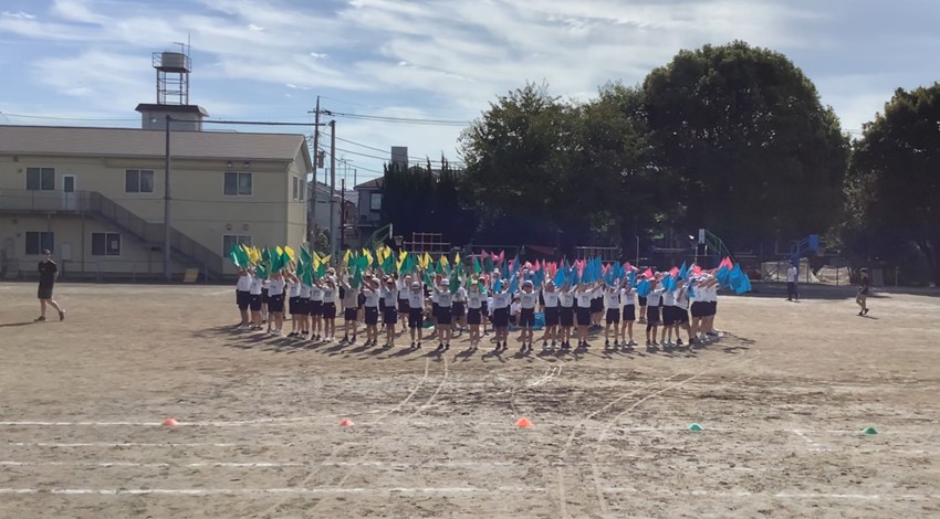 9月16日(火)から、運動会の表現運動の練習をし、10月4日(土)に、本番を迎え、無事やり遂げることができました。児童が考えた踊りもあり、大変盛り上がりました。旗の揺らめきや風を切る音を揃えて可愛さ・格好良さ・楽しさを表現できました。