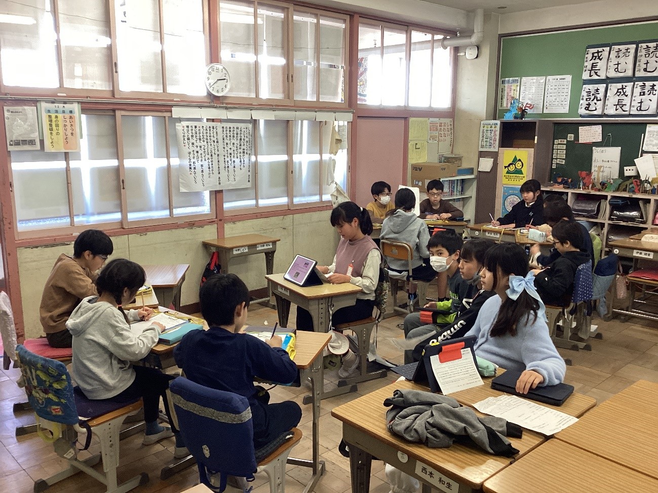 5月12日(月)から埼玉県学力学習状況調査を実施しています。写真は6年生の様子です。タブレットを用いて、問題を解いています。真剣取り組んでいます。(4~6年生)
