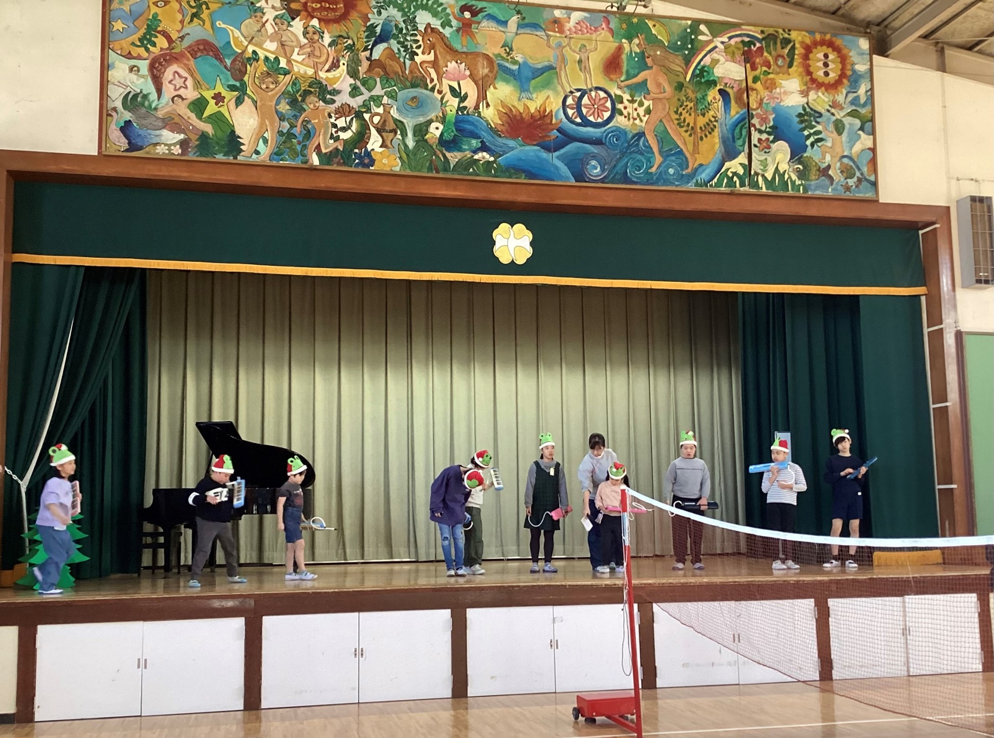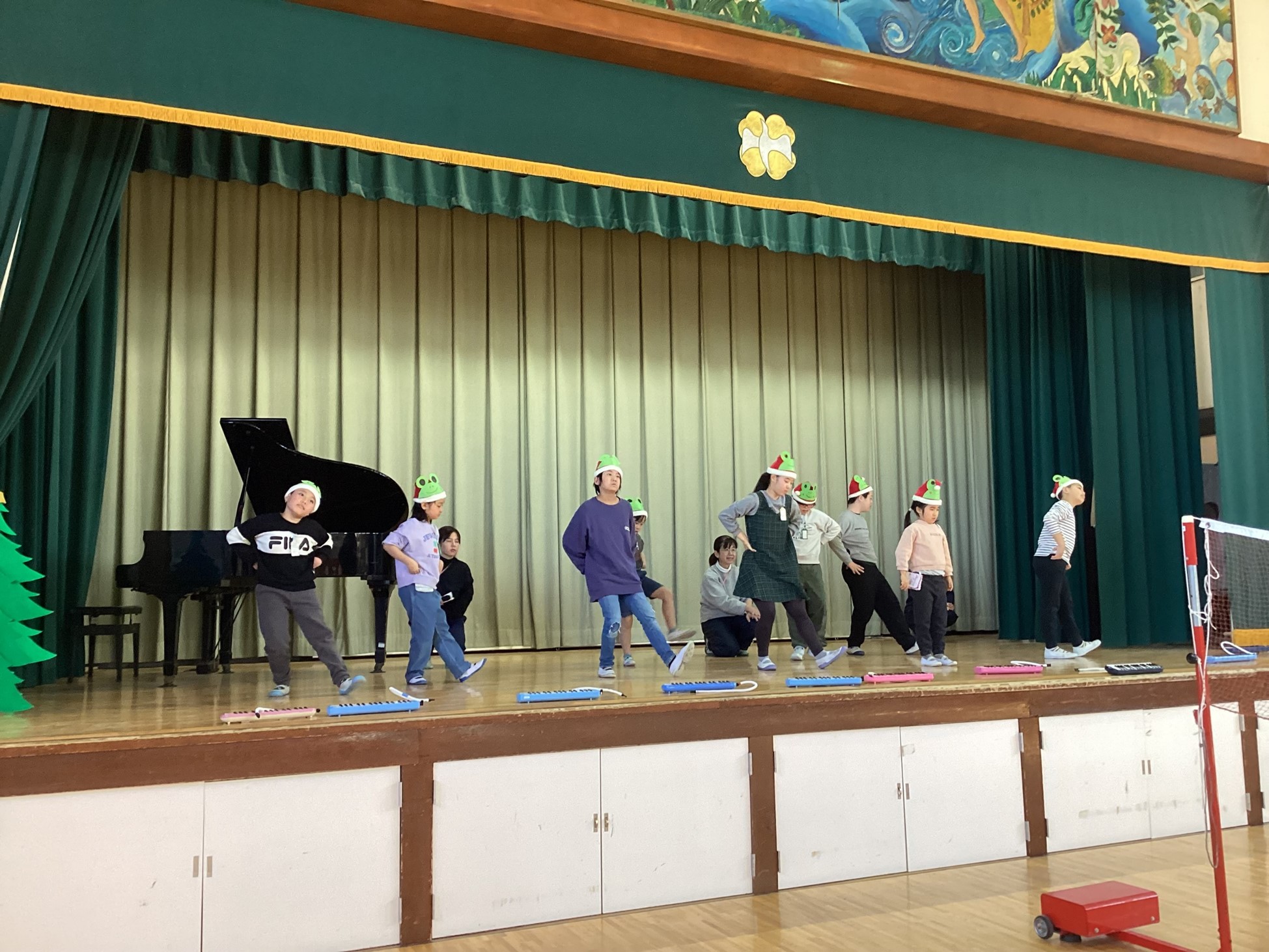 来週13日(金)に迫っているなかよし発表会本番に向けて、ミュージカルの練習に励んでいます。息を合わせて演奏する「かえるの合唱」「ジングルベル」では、早くなりすぎないように注意しながら、互いに合わせようという意識を持って演奏することができるようになってきました。なかよし発表会はたくさんのお客さんと大きなホールに緊張してしまうと思いますが、合奏も劇もダンスも、全て楽しみながら発表したいと思います。