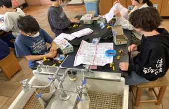 理科の単元名「電磁石」で、いろいろな性質を利用して扇風機や釣り遊びの仕掛けを作りました。うまく電流が流れるか、ハラハラドキドキしながら組み立てました。