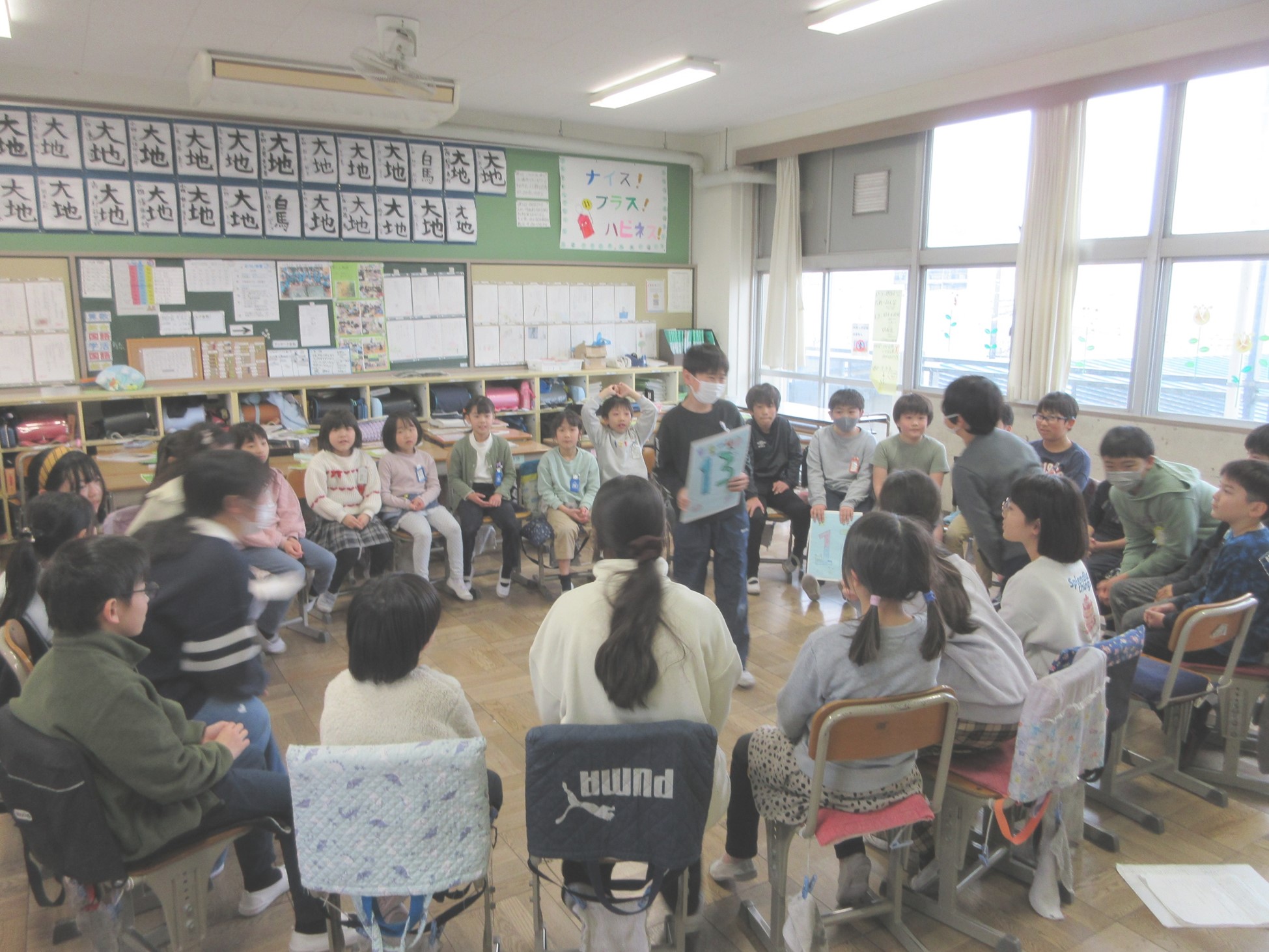 掃除から昼休みにかけて、今年度最後の縦割り交流会がありました。今回は、5年生が企画した遊びを行いました。どのグループも1年生から6年生が楽しめる遊びを考えていました。4月から様々な所で七小のリーダーになる5年生。その第1歩として今回の会を企画運営できたことは大きな経験になったと思います。最後には、これまでみんなを引っ張ってくれた6年生へ感謝の気持ちを5年生が代表して伝えることができました。