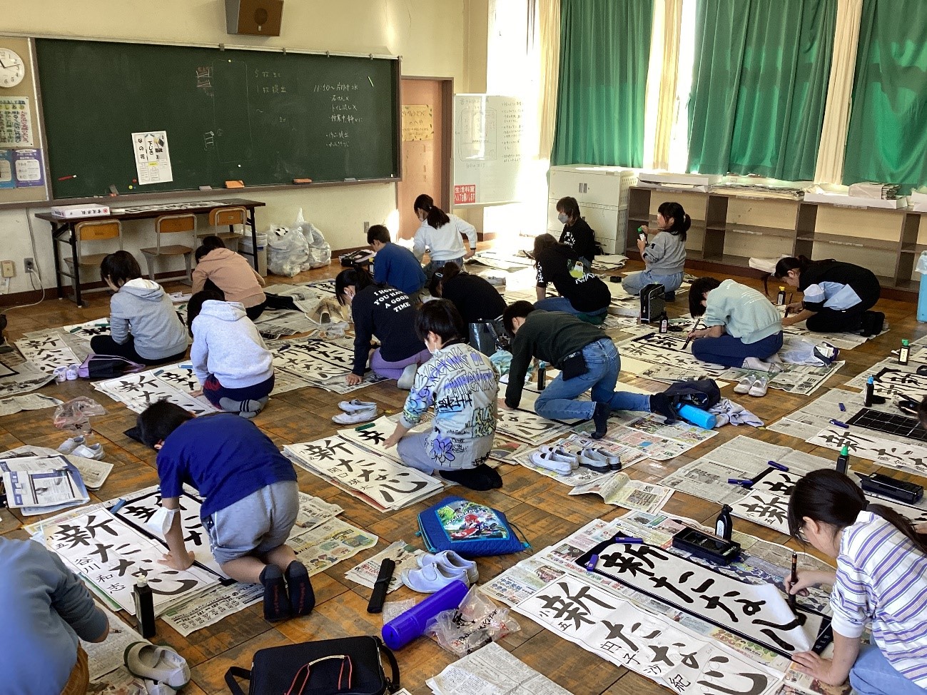 12月から冬休み、1月にかけて、「書きぞめ」に取り組みました。冬休みには宿題へのご協力ありがとうございました。3学期始まってすぐには、体育館で競書会を行いました。一人一人が真剣に4文字「新たな心」(6年生の課題)と向き合い、筆を動かしていました。